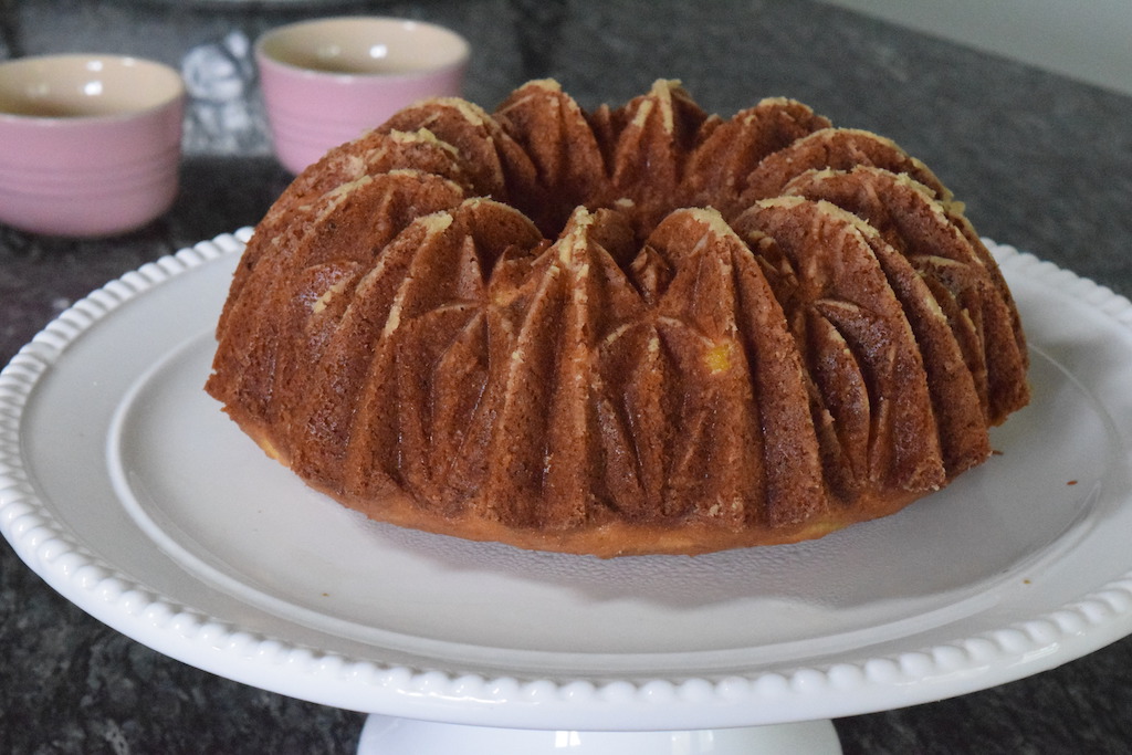 Grease, and flour a tube pan and pour the batter in it and smooth it out by tapping the pan gently on the counter.