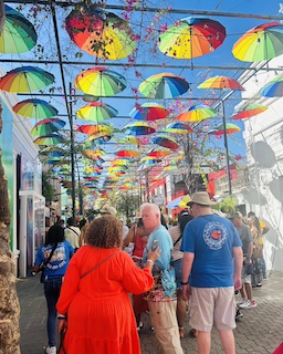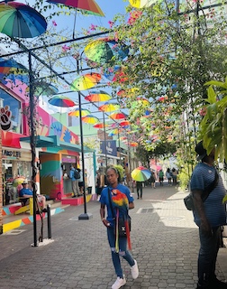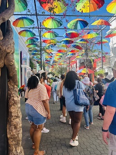 Next our walking tour took us to the Umbrella street. This pedestrain-only street offers a chance to experience Purto Plata’s lively atmosphere where vibrant umbrella hang from the top creating a pleasurable and enchanting ambiance.