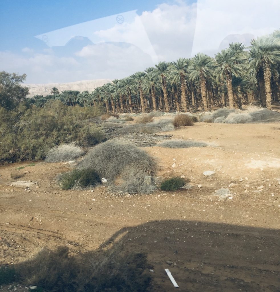 On our last day in Israel, with Gate 1 tours, our vacation in Israel was going to climax with a trip to Masada (an Israeli national treasure and United Nations World Heritage site) and the Dead Sea. Masada and the Dead Sea are two of the most visited sites in Israel. The drive along the shores of the Dead Sea, the lowest point, 430 meters below sea level, was intriguing. As we passed a mélange of brown arid, bare, and dusty land as far as our eyes could see was interrupted by huge Judean date palm plantations, which are, apparently, native only to desert oases, and was amazing and unexpected.